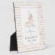 This baby shower welcome sign features a timeless beige tan stripe design with a sweet watercolour sailor teddy bear illustration. The script "welcome" heading is an image that cannot be edited. All of the other text is fully editable. For more advanced customisation of this design, simply select the "Customise It" button above.