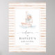 This baby shower welcome sign features a timeless beige tan stripe design with a sweet watercolour sailor teddy bear illustration. The script "welcome" heading is an image that cannot be edited. All of the other text is fully editable. For more advanced customisation of this design, simply select the "Customise It" button above.