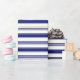 A pattern of jaunty stripes in sailor blue on white makes one think of sailboats and holidays by the seaside.