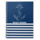 Sailor Nautical Anchor Navy Blue Striped Notebook