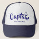 Personalise this boats blue anchor nautical themed yachting sailors captain hat with the name or your sail or motor boat name.