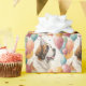 A joyful watercolor illustration featuring a happy Saint Bernard wearing a colorful party hat, surrounded by soft pastel balloons and playful confetti details. The gentle brushwork and warm, cheerful palette create a celebratory design that feels lighthearted without being loud. Perfect for birthdays, dog lovers, and thoughtful gift wrapping that adds a fun yet artful touch to any celebration.