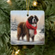 Saint Bernard Dog in Snow Christmas Ceramic Ornament