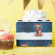 Saint Bernard dog in snow with Santa hat and Christmas gifts is a perfect Christmas gift idea for someone who love this dog breed.
