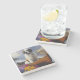 The coasters are gorgeous, a quality feel and heavy weight. They look like a precious archeological find. A rustic stone juxtaposed with a modern floral black and white print. I like the way the print goes slightly imperfect on the cut stone edges giving them a kind-of natural beauty.
