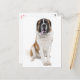 This fun canine postcard features an image of a Saint Bernard pup with his tongue out in greeting highlighted against a crisp white background.