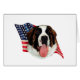 USA! America! Shout your pride with this awesome flag Patriotic background with this AKC dog breed Saint Bernard in the forefront. Show your pride with this design on a t-shirt, mug, and much, much more!