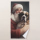 Saint Bernard With Santa Claus Festive Christmas Bath Towel Set