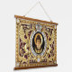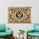 The polyester fabric displayed many wrinkles and several sharp creases throughout. At the bottom of the tapestry, I noticed a bulge in the fabric because it was not pulled tight enough before being connected to the wooden boards. It took me over an hour to spay water on the tapestry before putting it on an ironing board where I used a warm iron over a polyester cloth to remove the wrinkles and creases in the material. I was able to get out the wrinkles and creases that made that tapestry look as beautiful as its picture.