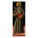 Set against a black background with the signs of the stigmata (Christ’s wounds from the Crucifixion) prominently displayed on his hands and abdomen, Saint Francis appears about to speak. The sound of worship, often evoked this way in devotional painting, could prove powerful in stimulating prayer or song and was a key element of many altarpieces.
