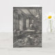 Saint Jerome in His Study by Albrecht Durer, 1514, is a large and unusually detailed copper plate engraving depicting the saint writing in his study surrounded by objects of symbolic importance. A small dog and lion doze in the foreground. This print may be among the first to depict the effects of light and shadow in the difficult metal plate medium, and foreshadows similar work by Rembrandt and later generations of artists.