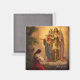 This magnet features a classical painting of Saint Joan of Arc in front of Saint Michael and Saint Catherine by Anton Stilke from the late 1800s.