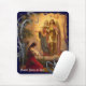 This mousepad features a classical painting of Saint Joan of Arc before Saints Michael and Catherine with a modern style edge.