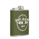 The flask itself is fine. It’s a cheap flask, obviously bought in bulk, however am prepared to overlook that. Given that it is a personalized item, I would have liked to have seen gift boxing instead of the generic packaging. Terrible printing, and/or quality. It’s a cheap, tacky vinyl. It is not cut straight and is also applied in a way that it is overhanging the bottom, causing the glue to catch on items and it will eventually roll and tear, damaging the wrap.