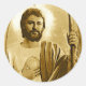 This sticker depicts Saint Jude Thaddeus. He is the Catholic patron saint of "lost causes" and "cases despaired of". When all hope is gone, he is the one to call upon, and his help often comes at the last moment.