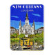 Saint Louis Cathedral features a vintage retro art travel image which shows the famous cathedral in New Orleans, Louisiana.