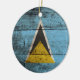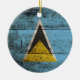 Saint Lucia Flag on Old Wood Grain Ceramic Ornament