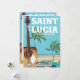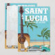 Saint Lucia Vintage Holiday Print - Classic vacation poster featuring a classic car and a acoustic guitar on the beach and island of Saint Lucia. Beach travel poster.