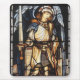 Saint Michael (1873) by Sir Edward Coley Burne-Jones is a vintage Victorian architectural element, a stained glass window in a church with an angel. A Pre-Raphaelite fine art religious piece featuring archangel St. Michael holding a sword.