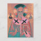 Saint Nicholas also called Nikolaos of Myra, and lived in the 4th century. This image depicts him holding a book of scripture and has a small icon of Christ and Mary on either side of him.