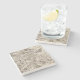 The coasters are gorgeous, a quality feel and heavy weight. They look like a precious archeological find. A rustic stone juxtaposed with a modern floral black and white print. I like the way the print goes slightly imperfect on the cut stone edges giving them a kind-of natural beauty.