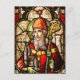 Saint Patrick image created on stained glass. Saint Patrick the patron saint of Ireland holds a staff in one hand and the church in his other. Vintage fine art in public domain.