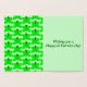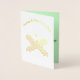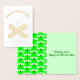 This awesome sleek foil card features a cartoon of a cheerful butterfly with a dark green body and fluorescent green wings. On the wings is darker green text that says “Happy St Pats”. This friendly little butterfly is designed to appeal to all ages and is ready and waiting to wish someone a happy St Patrick’s Day.