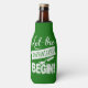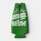 Custom green beer beverage coolers. Keep your beer nice and icy with a comical St Paddys Day wrap that can also help you keep tabs on your drink. Beer stays frosty and cold, but your hand stays nice and warm and that is important. A freezing cold hand might not be the thing you want to offer up to a potential date. So, see? We're also helping you score.