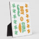 A gender reveal baby shower is a wonderful way to honour the mummy-to-be and makes everyone anticipate! This plaque is for the theme of St. Patrick's day. The design has the word "Boy" with a moustache below it and "Girl" with girly lips beneath it. On the top and the bottom are shamrocks and clovers. This design is charming with the colours of orange and green. Use this plaque as decoration for your baby shower party.