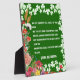Flower collage decor 'Home Accent Irish Blessing Plaque' for Saint Patrick's Day. The illustration has a red, orange, pink floral collage amidst greenery on a shamrock green background. The TEXT is easily customisable with your choice of Irish/Any Blessing. The words and calligraphy can be changed.