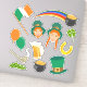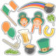 This collection of Irish symbols is mainly associated with the Saint Patrick's Day celebration. The stickers are: the Irish flag, the pot of gold and rainbow, the leprechaun, the lucky golden horseshoe, the four-leaf clover, a beer mug, a pair of orange and green balloons, shamrocks, an Irish pipe,