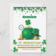 Festive Saint Patrick’s Day Party Invitation featuring shamrock elements and vibrant green theme. Perfect for Irish celebrations, pub gatherings, house parties, and March 17 events. Stylish and customizable design ideal for inviting guests to your lucky holiday celebration.