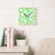 Celebrate St Patty's Day in style with this pretty, modern-looking shamrock pattern square clock design. The 4-leaf clovers are white with splashes of yellow and blue on a green background with a painted - slightly retro tiedyed - look. The clock numbers are orange with dots. Display this fun, lucky clock for Saint Patrick's Day or all year if you love clovers.