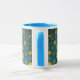 Coffee mug with "Saint-Remy Revisited" an abstract design by Susan Wallace. Copyright © 2007, Susan Wallace. Bright gold stars repeat endlessly on a field of vibrant turquoise. Full wrap-around design.