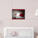 This poster features a painting print of Saint Therese with a red rose.