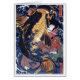 Saito Oniwakamaru. Vintage Japanese Woodblock Art Print by Utagawa Kuniyoshi Saito Oniwakamaru the young Benkei fights the giant carp at the Bishimon waterfall. After destroying the enormous monster he discovers the remains of his mother, Ohaya, who had been eaten by the fish. Utagawa Kuniyoshi (Japanese: 歌川国芳) (ca. 1797 - April 14, 1861 was one of the last great masters of the Japanese ukiyo-e style of woodblock prints and painting. He is associated with the Utagawa school. The range of Kuniyoshi's preferred subjects included many genres: landscapes, beautiful women, Kabuki actors, cats, and mythical animals. He is known for depictions of the battles of samurai and legendary heroes. His artwork was affected by Western influences in landscape painting and caricature.