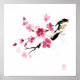 Pink Sakura blossom. Japan traditional sumi-e ink painting.