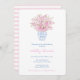 Pretty pink cherry blossoms in a Chinoserie Double Happiness vase for this invitation design with co-ordinating seersucker stripes backer. All elements were handpainted by me in watercolor before being scanned into digital form. I've set the template up for a Baby Shower but all of the text fields are customisable to your needs. You can change the pink on the reverse to any other colour of your choice by changing the background colour in the design tool. Underneath the text customisation box, click to "customise further".