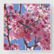 Sakura Cherry Blossoms Red Stars Square Wall Clock