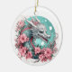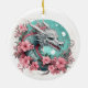 A fiercely elegant dragon surrounding by gorgeous pink cherry blossom flowers.