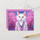 Postcard featuring funny fantasy art. A jazzy kitty in a stylish cardigan is among the blooming cherry trees. Great for anyone who loves modern kitties and humour and sakura ,spring theme.