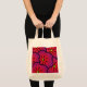 The printing came out very well, better than I had anticipated. The natural color fabric is sturdy with strong seams and comfortable handles. This tote fits easily over my shoulder. As it is filled, the bottom flattens out--very cool! I would buy this product again. This grocery tote holds a lot of groceries! The image quality was very good. The colors were a little darker than I had expected. The darkness may have been due to printing on a natural color fabric rather than on white. The cat design is attractively centered on the tote. The spirit of the design is very lively, just as it appears on the Zazzle website.