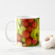 This beautiful mug features a photograph of a mixture of salad ingredients in a colander. The tasty photo includes tomatoes, radishes, spring onions and lettuces. The design is shown on a basic white coffee mug, but is also available on several other styles and colours of mugs.