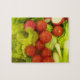 This awesome puzzle features a photograph of a mixture of salad ingredients in a colander. The tasty photo includes tomatoes, radishes, spring onions and lettuces.
