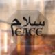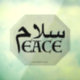 The word "Peace" in both English and Persian script ("Salam"), where the last Persian letter "m" is also the first English letter "p" - symbolising the bringing together of East and West through common ground