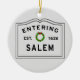 Buy one for everyone on your Christmas gift list. Christmas holidays in New England would not be complete without a festive Entering Salem ornament. Great gift idea for someone living in the city of Salem MA, or a Salem neighbourhood like Gallows Hill, Salem Neck, North Salem, The Point, South Salem, Highland Ave. / Castle Hill, Vinnin Square. Give one to your parents, grandparents, newlyweds, welcome to the neighbourhood, housewarming you name it!