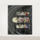 A wall tapestry featuring the really beautiful stained glass window from Salisbury Cathedral's transept. The text in the window reads "Even so must the Son of Man be lifted up". It comes from bible verse John 3:14