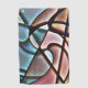 Large mosaic in blue and salmon cemented texture with twisted lines in a spiral shape and in a style reminiscent of painting with some shadow or relief.