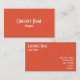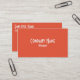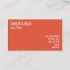 Salmon orange business card with white font.