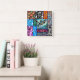 Salmon Crazy Quilt Floral Whimsical Colourful Square Wall Clock